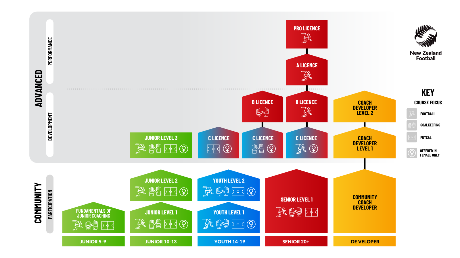 New Zealand Football (NZF), in partnership with the Oceania Football Confederation (OFC), offers a structured suite of advanced coaching courses designed to support coaches working in competitive and high-performance environments.